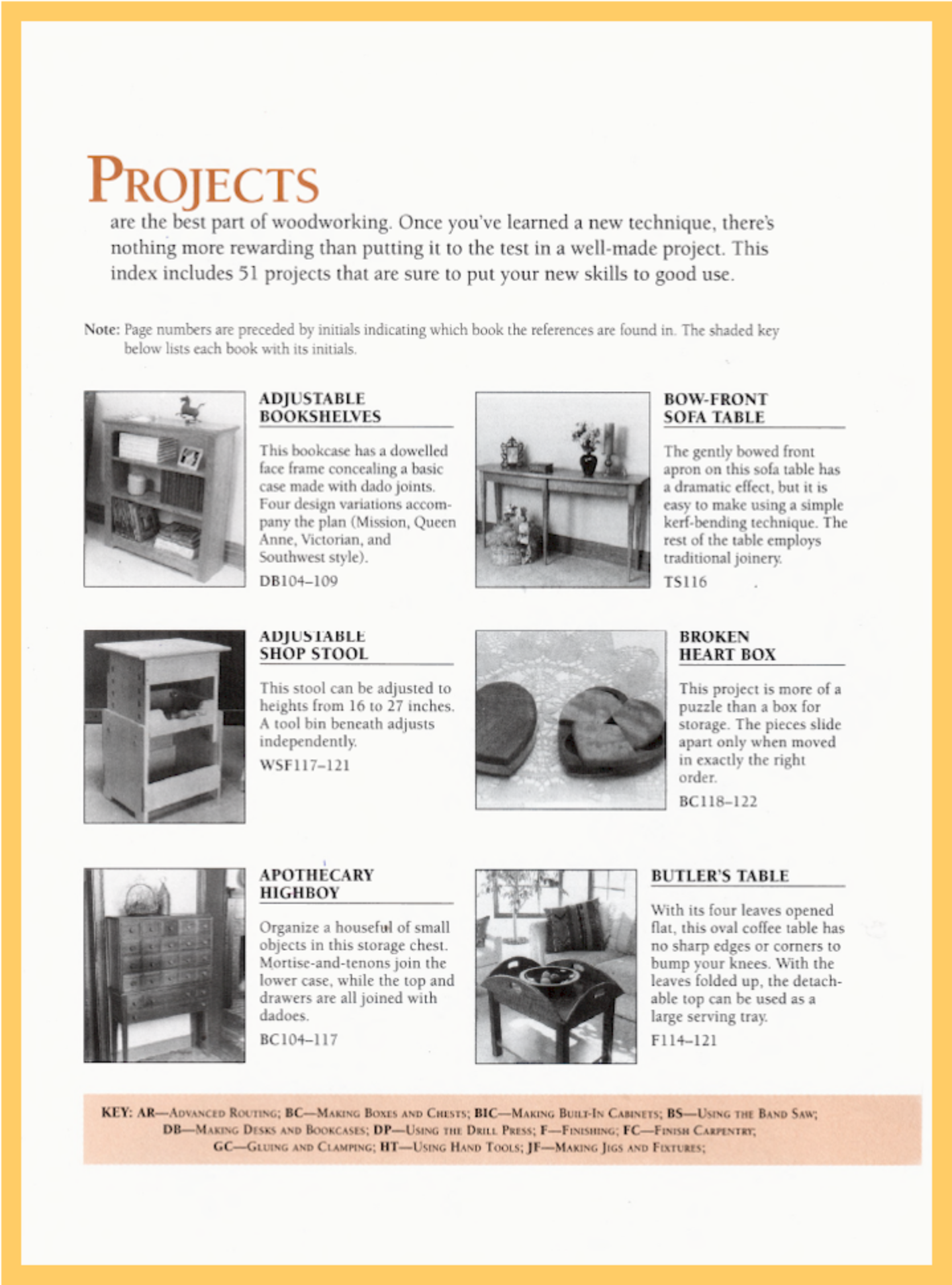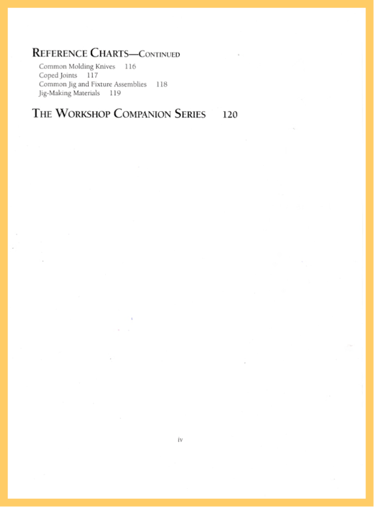 The Workshop Companion book series is an encyclopedia of woodworking – 21 books with almost 3000 pages and over 100 detailed project plans. This book helps you quickly locate the info you need with a comprehensive index, project index, and jigs and fixtures index. It also provides general woodworking information in reference charts and tables – wood movement, toxic woods, relative wood strengths, standard furniture dimensions, maximum shelving spans, properties of common adhesives and finishes, recommended tools speeds, lists of bits, cutters, blades, and materials – knowledge you cannot work wood without. And it’s FREE! 128 pages, over 500 illustrations and photos in PDF format.