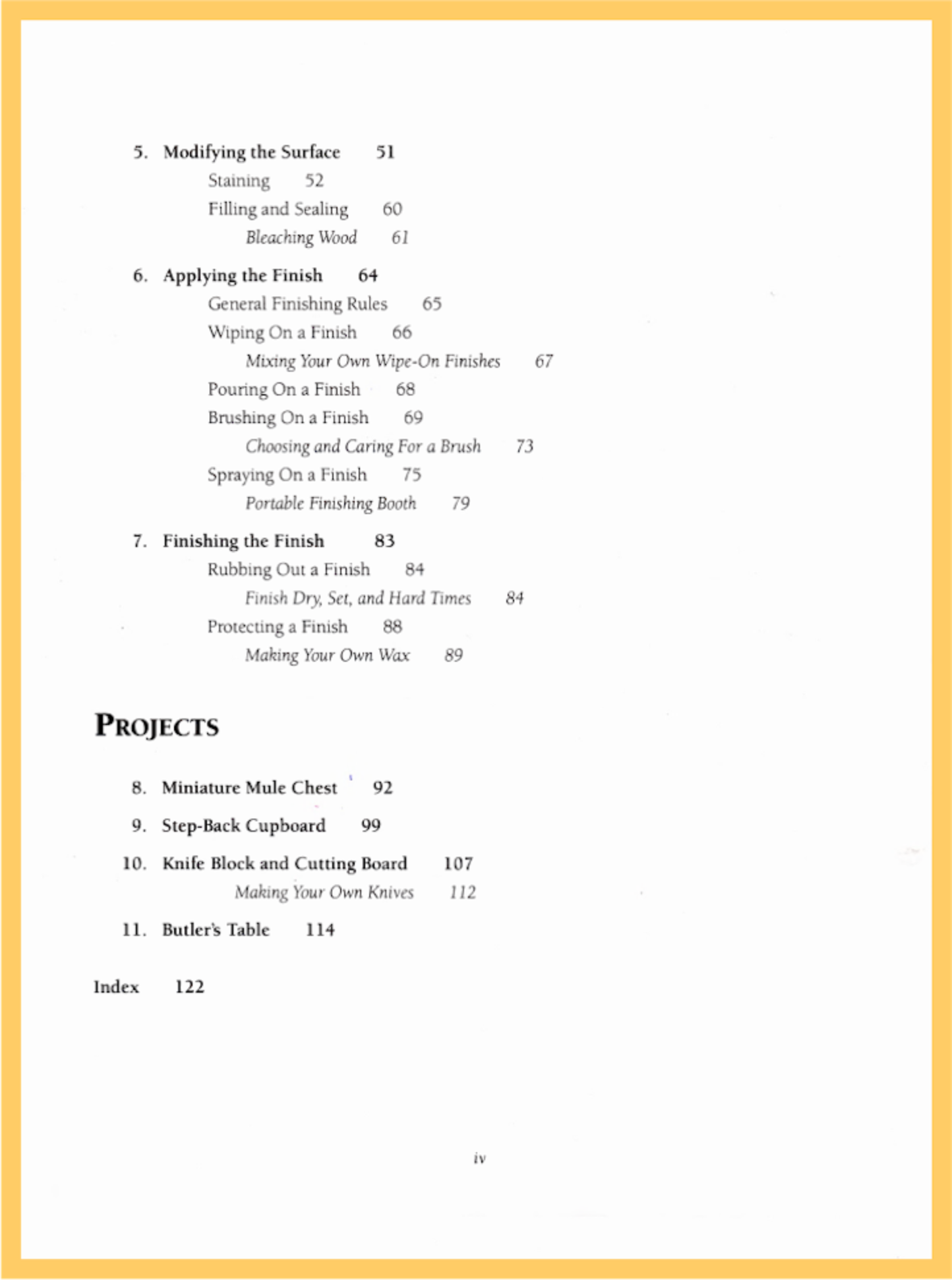 A good finish makes a good project exceptional. And to achieve a good finish, you need information about the tools, skills, and materials involved. It can seem complex, but Nick simplifies the process by breaking it down into a series of decisions, explaining what you need to know to make the right choices. The book is full of professional tips on surface preparation, sealing, staining, wiping, brushing, spraying, and rubbing-out. There’s even a plan for a folding finishing booth. Four complete project plans demonstrate common finishes: a Miniature Mule Chest, Step-Back Cupboard, Knife Block and Cutting Board, and a Butler’s Table. 128 pages, over 250 illustrations and photos in PDF format.