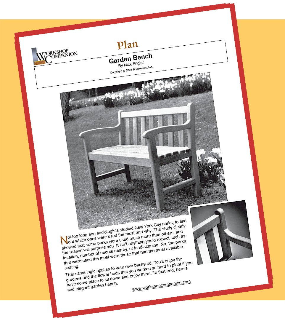 that were used the most were those that had the most available seating! The same concern applies to your own backyard. You’ll enjoy being outdoors more if you have a comfortable place to sit and relax. To that end, consider this elegant garden bench. 11 pages in PDF format, step-by-step instructions, measurements in both English/Imperial and Metric measurements.
