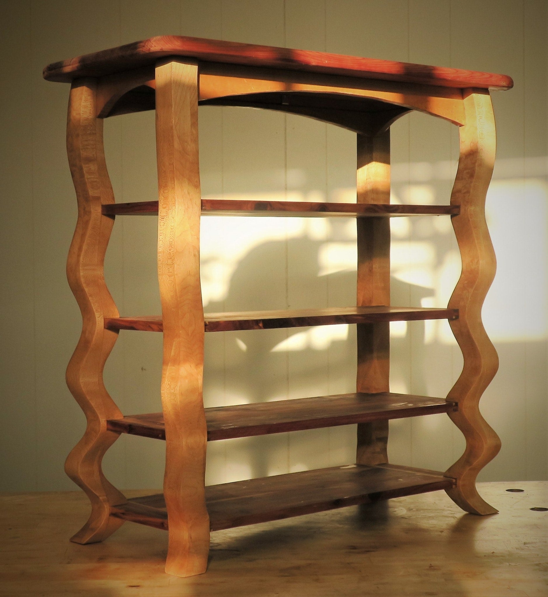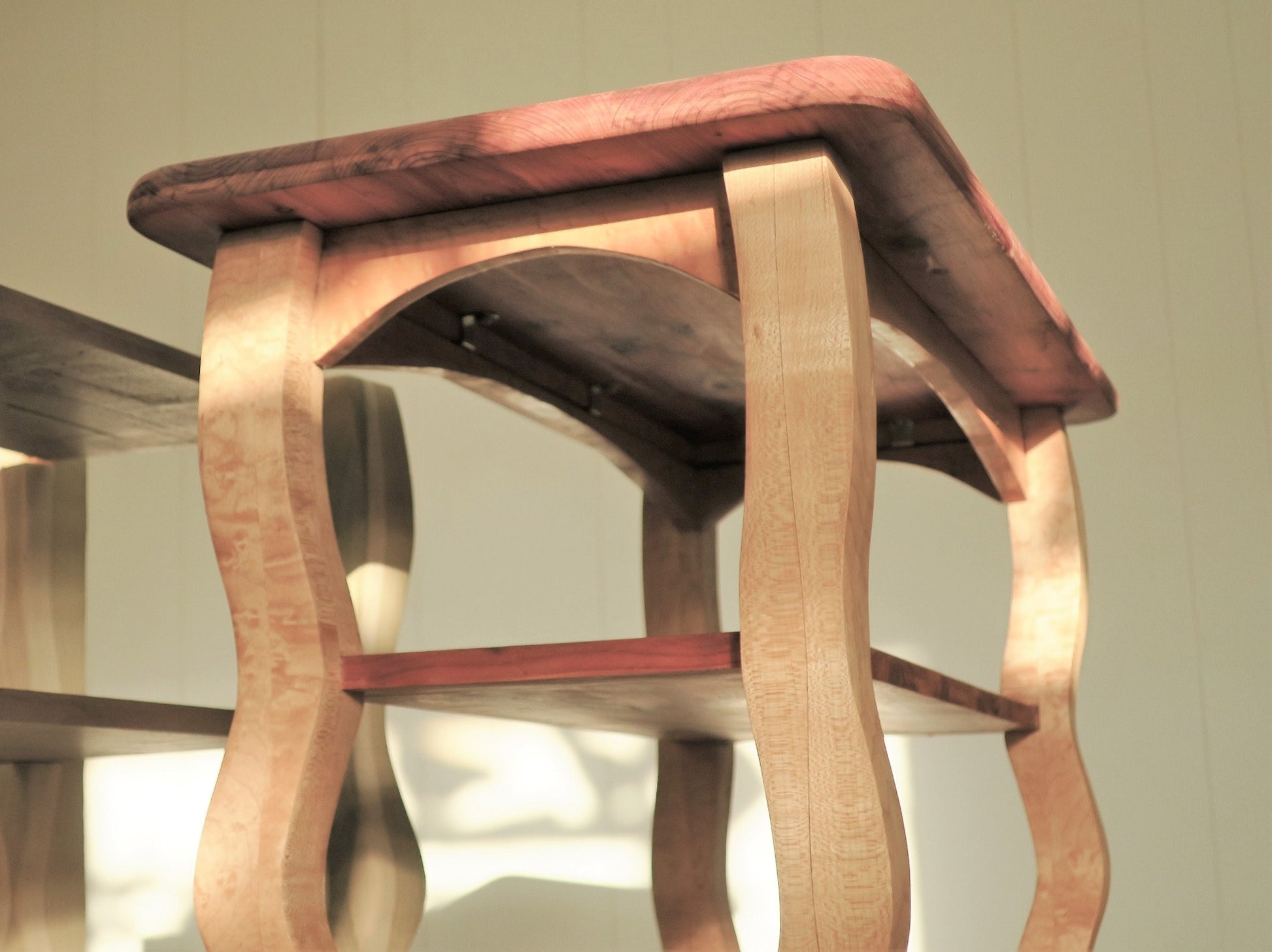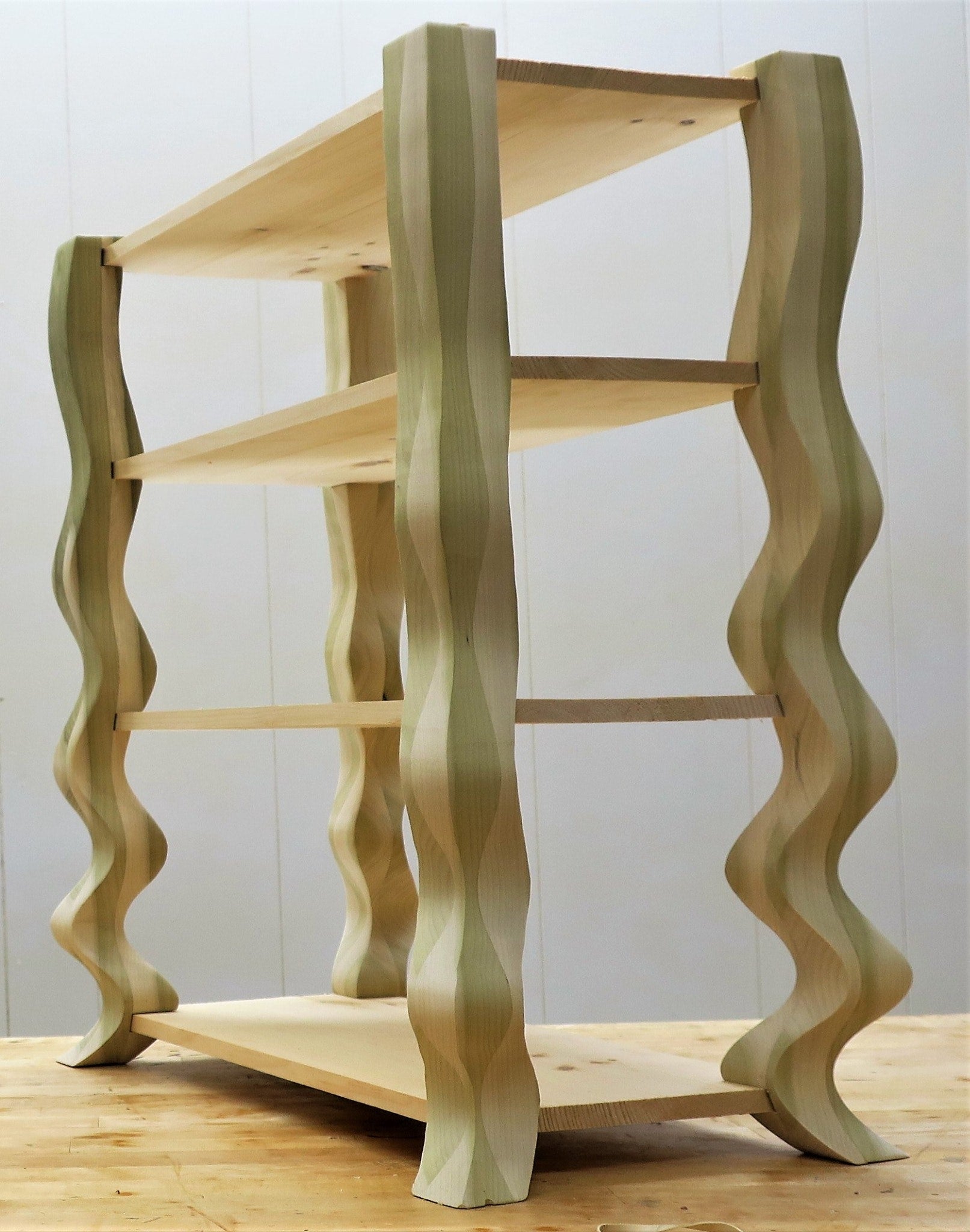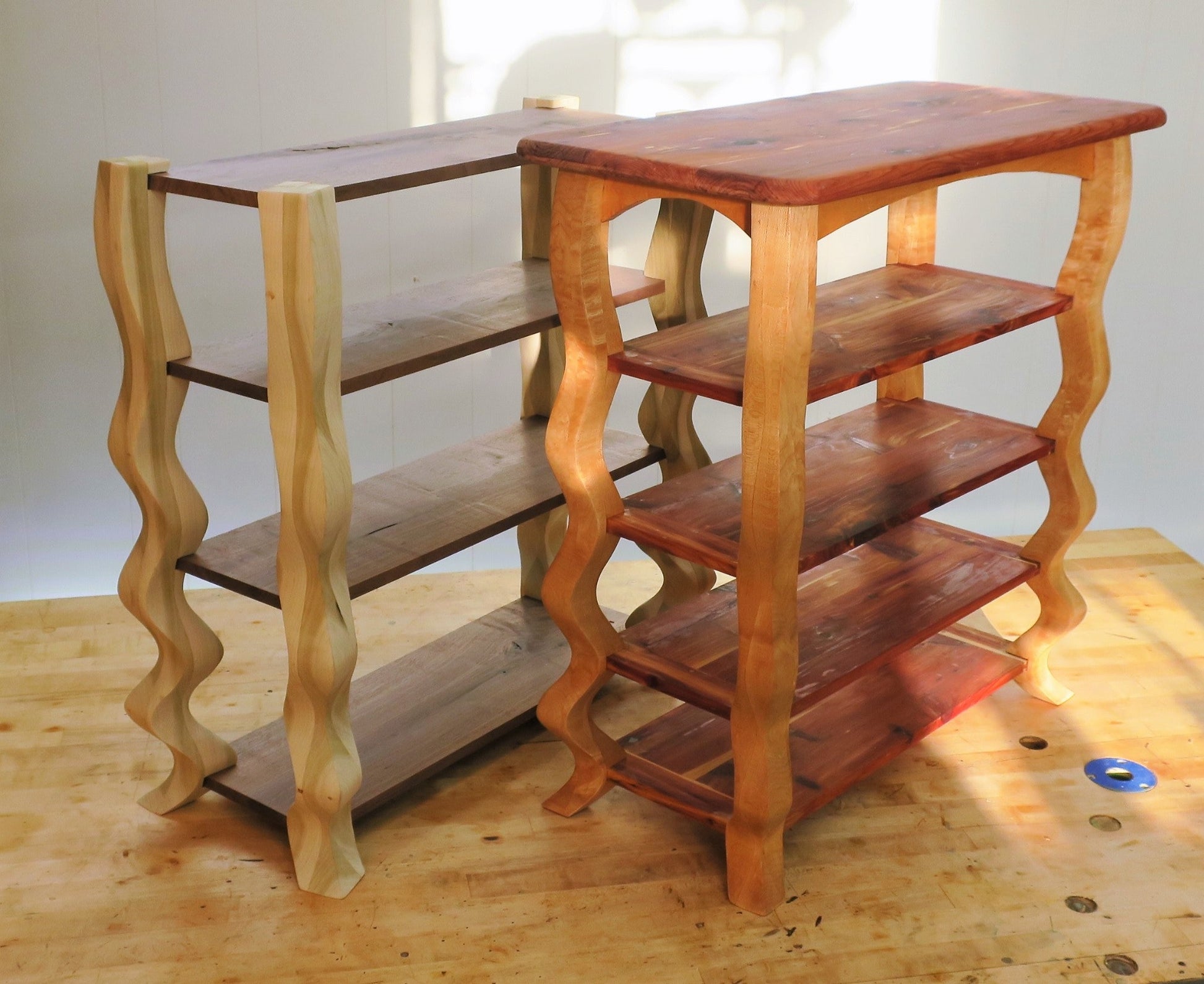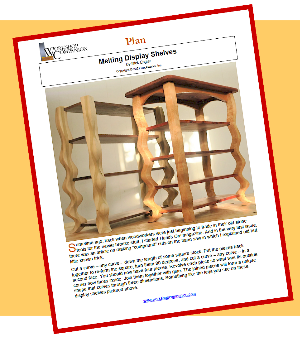 These eye-catching display shelves seem to be dissolving right before your eyes. The legs look as if they are melting and the shelves are slowly collapsing into the workbench. But it's all solid wood. Using a little-known band saw technique, Nick makes just two cuts in adjacent sides of the leg stock. When he puts the parts back together, they form spectacular shapes that curve through three dimensions. It's surprisingly easy to do and Nick walks you through the process step by step, showing how to make the curves and how to cut accurate joints in the curved surfaces. 15 pages in PDF (digital) format, including complete instructions, detailed drawings in both English and metric measurements, FULL-SIZE patterns for the "melty" legs, PLUS TWO bonus patterns for legs that Nick featured in in his "Band Saw Magic" video on YouTube.