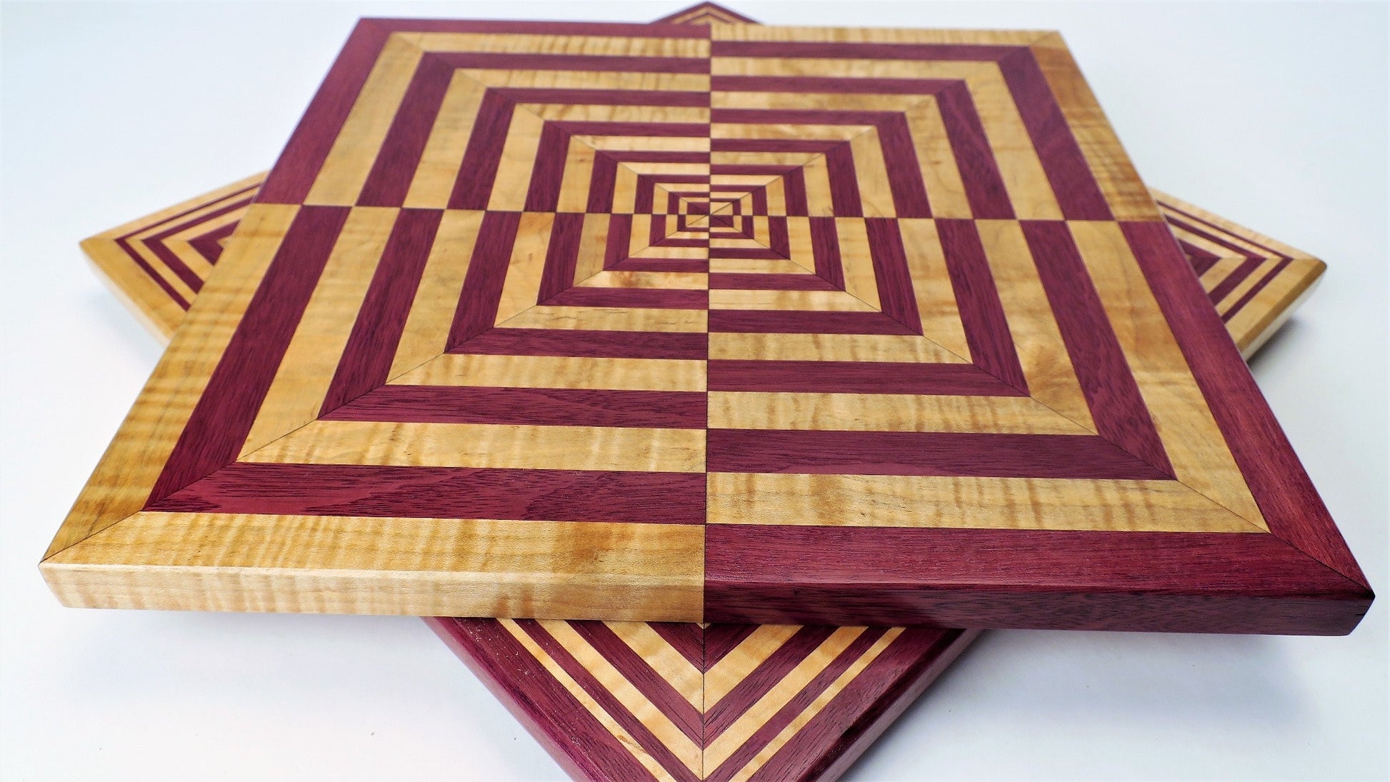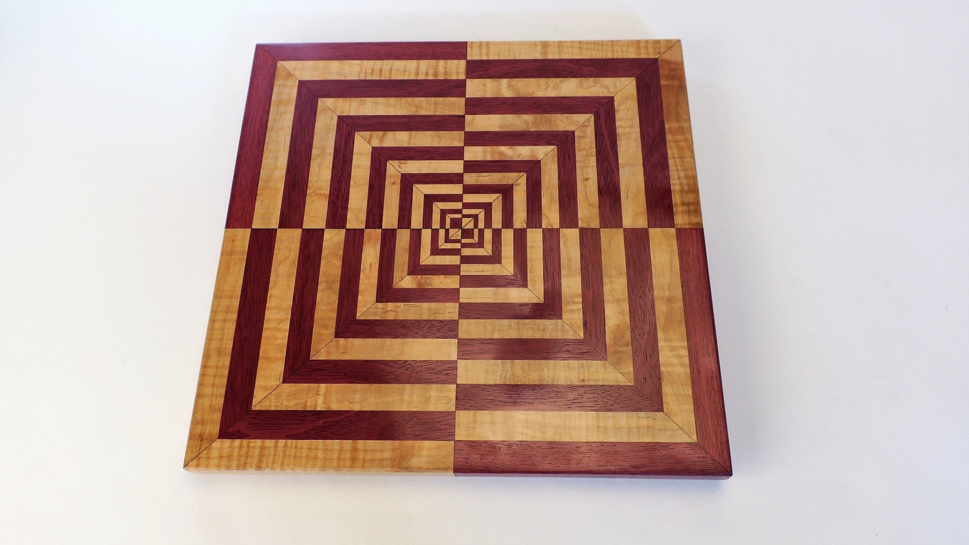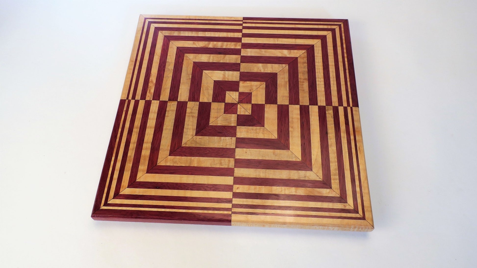We couldn't think of a descriptive name for this project. The "Hypnotic" cutting board didn't sound right, neither did the "Mesmerizing" cutting board. And the "Look At This Long Enough and Your Eyes Will Cross" cutting board was out. The only this we knew for sure was this definitely wasn't another "Chevron" cutting board. Nick fashioned this unique design from strips of contrasting wood carefully arranged to create the optical illusion of peering into a long tunnel…sorta. There are other effects too, and it’s hard to decide which one to focus on…if you can focus at all! 8 pages in PDF format, including step-by-step directions and drawings in both English and metric measurements. PLUS you get the plans for both the Assembly Table and the Miter Sled that Nick uses to make the cutting board in our YouTube video.