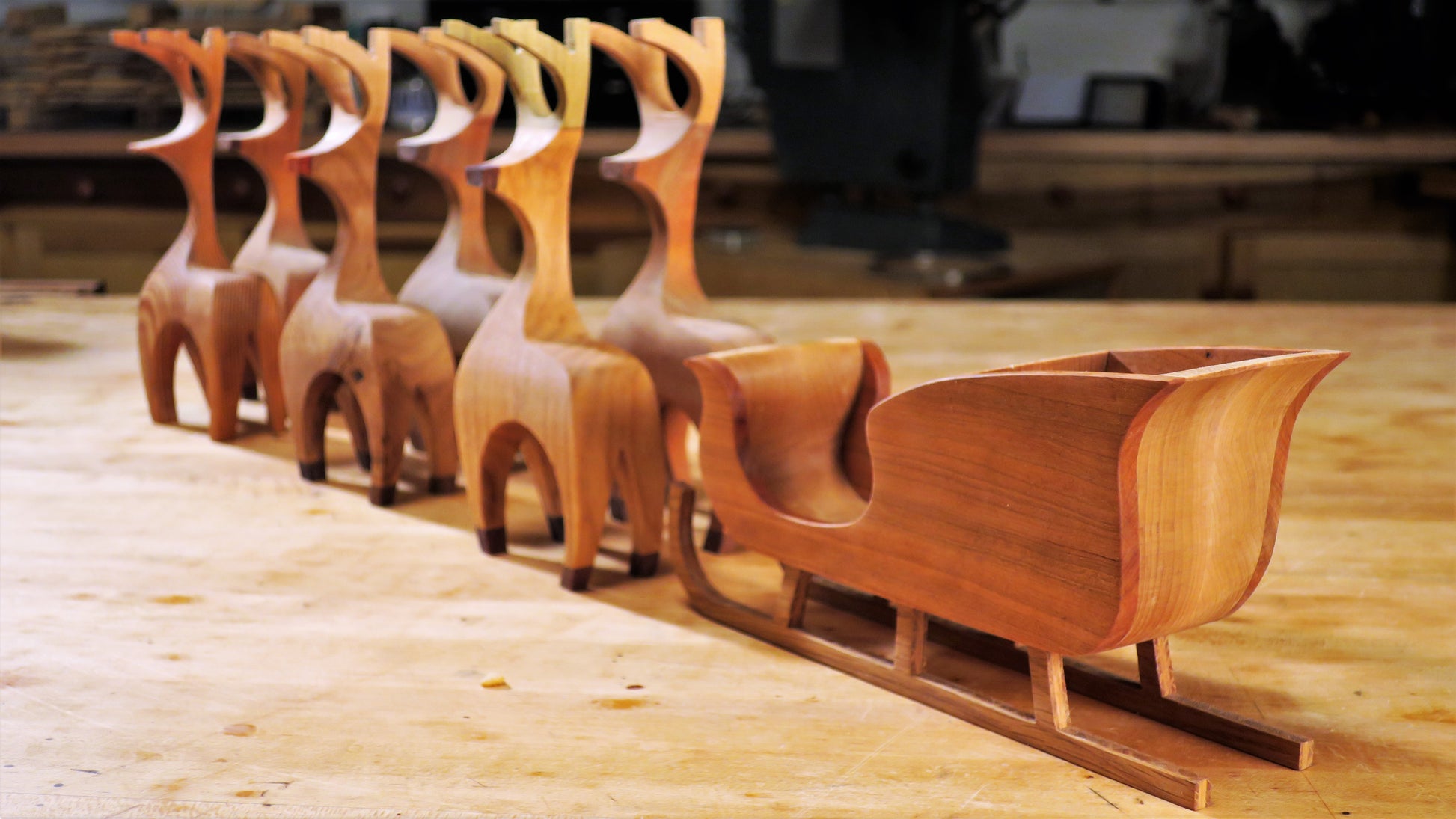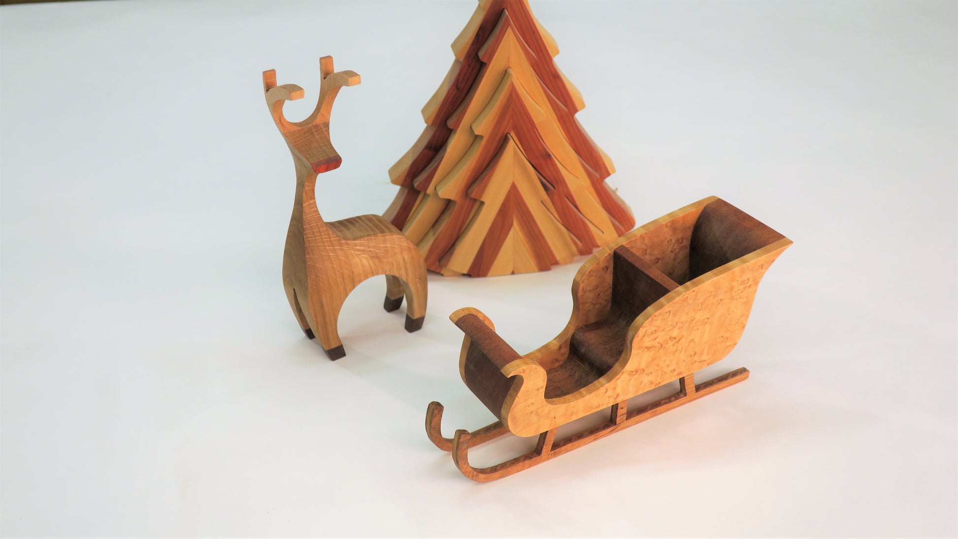 Like our Band Sawn Reindeer, this miniature wooden sleigh is designed to be cut out quickly and simply on a band saw. Make eight (or nine) reindeer, add this sleigh, and you have Santa's entire team! Small enough (8-1/2" or 216 mm long) to use up some of those special wood scraps you just couldn't bear to throw away. 10 pages in PDF format, including step-by-step instructions, full-size patterns, and measurements in both English/Imperial and Metric units.