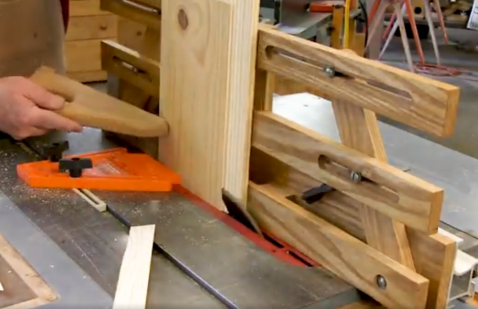 If you use a table saw, now and then you need a tall fence to properly support a board when cutting it on edge. But a tall fence has another use. It really shines when you use it to support a horizontal fence. This fence has a straight edge that protrudes out over the work, flush with the saw blade. Mark your work where you want to cut it, attach a straight edge along the marked line with double-sided carpet tape, and then guide the straight edge along the edge of the horizontal fence as you cut. It will cut the line easily and precisely. This set up vastly simplifies a remarkable number of otherwise complex operations. You can use it to cut tapers, odd angles, complex shapes, and duplicate parts. You can quickly straighten a warped, bowed, or live edge; adjust miters, or shave a whisker off an edge for a perfect fit. 6 pages in PDF format, including plans for a simple tall fence, an adjustable tall fence, and a horizontal fence that will attach to either fence.