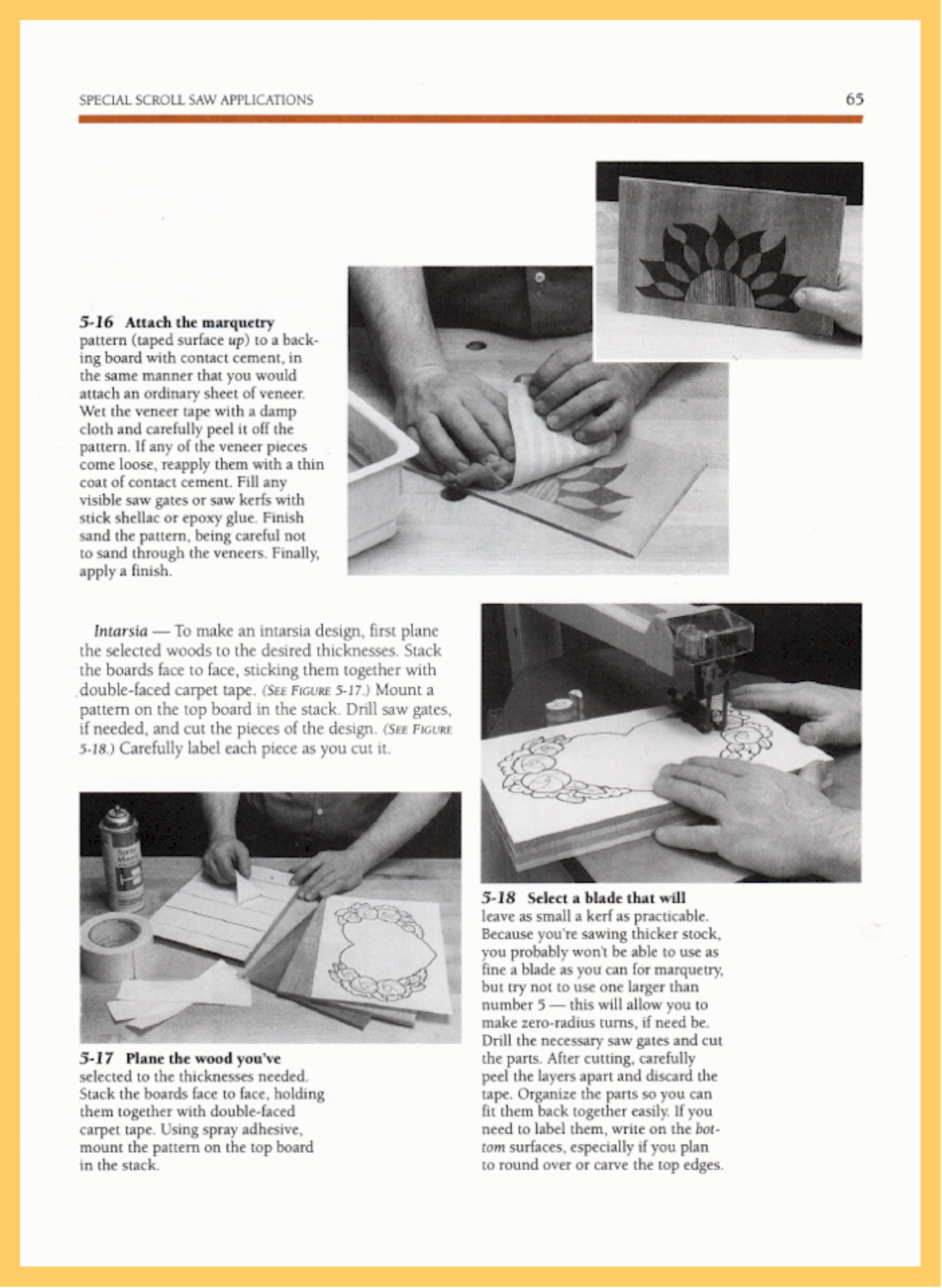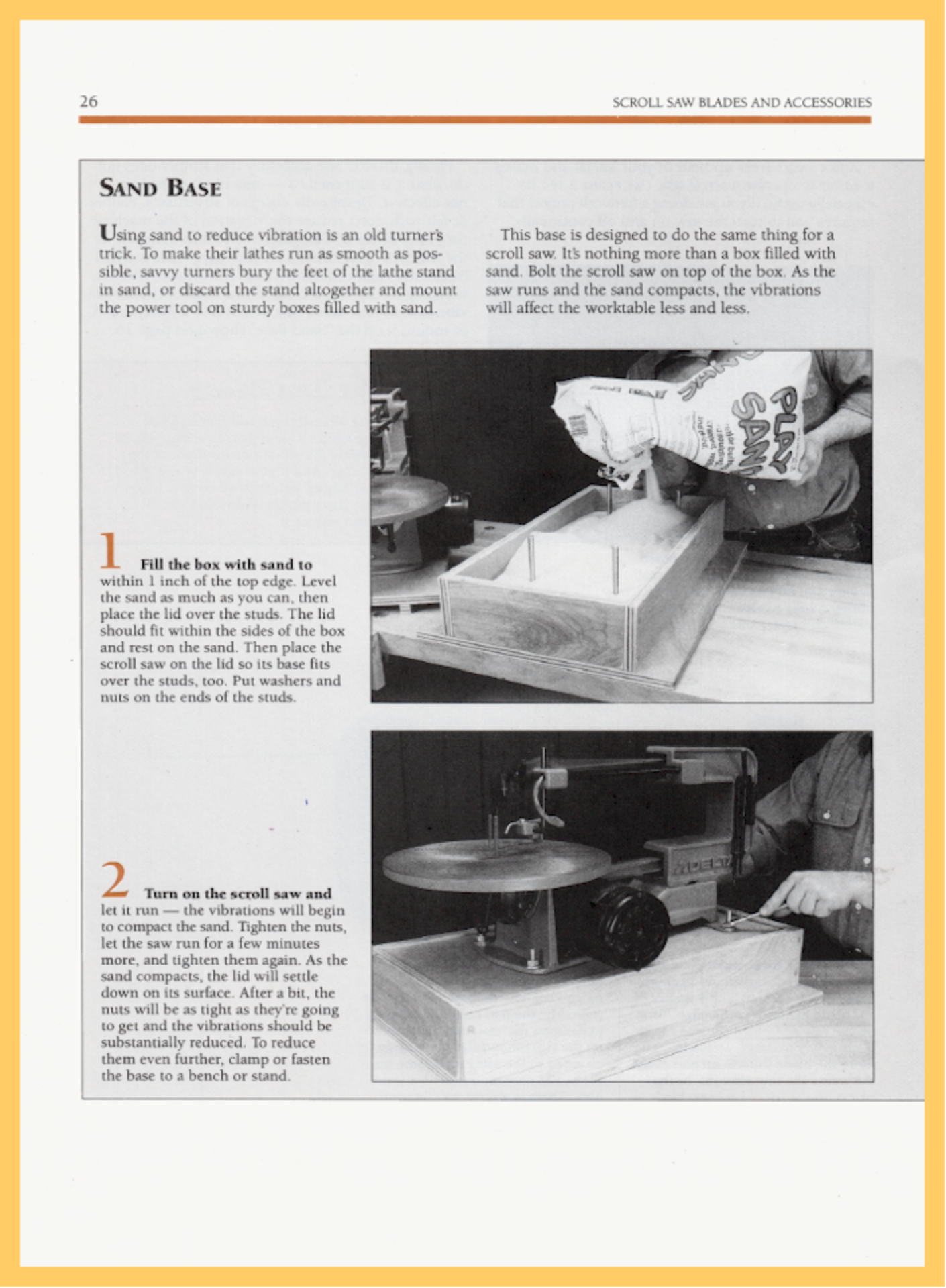 No other power tool will create such intricate shapes and fine details as well as a scroll saw. Nick shows how to cut lace-like fretwork, detailed silhouettes and signs, even three-dimensional shapes and sculptures. He explores the tool from blades to bearings, telling how to choose the best scroll saw and the best blade for the work you like to do. Learn how to make interior and exterior cuts, enlarge patterns, inlay different woods and veneers. Nick even shows how to turn a hand-held jig saw into a scroll saw! Project plans show how to make a Scroll Saw Storage Stand, Fretwork Mirror, Victorian Display Sheves, and a spinning “Round and Round” Whirligig. 128 pages, over 300 illustrations and photos in PDF format.