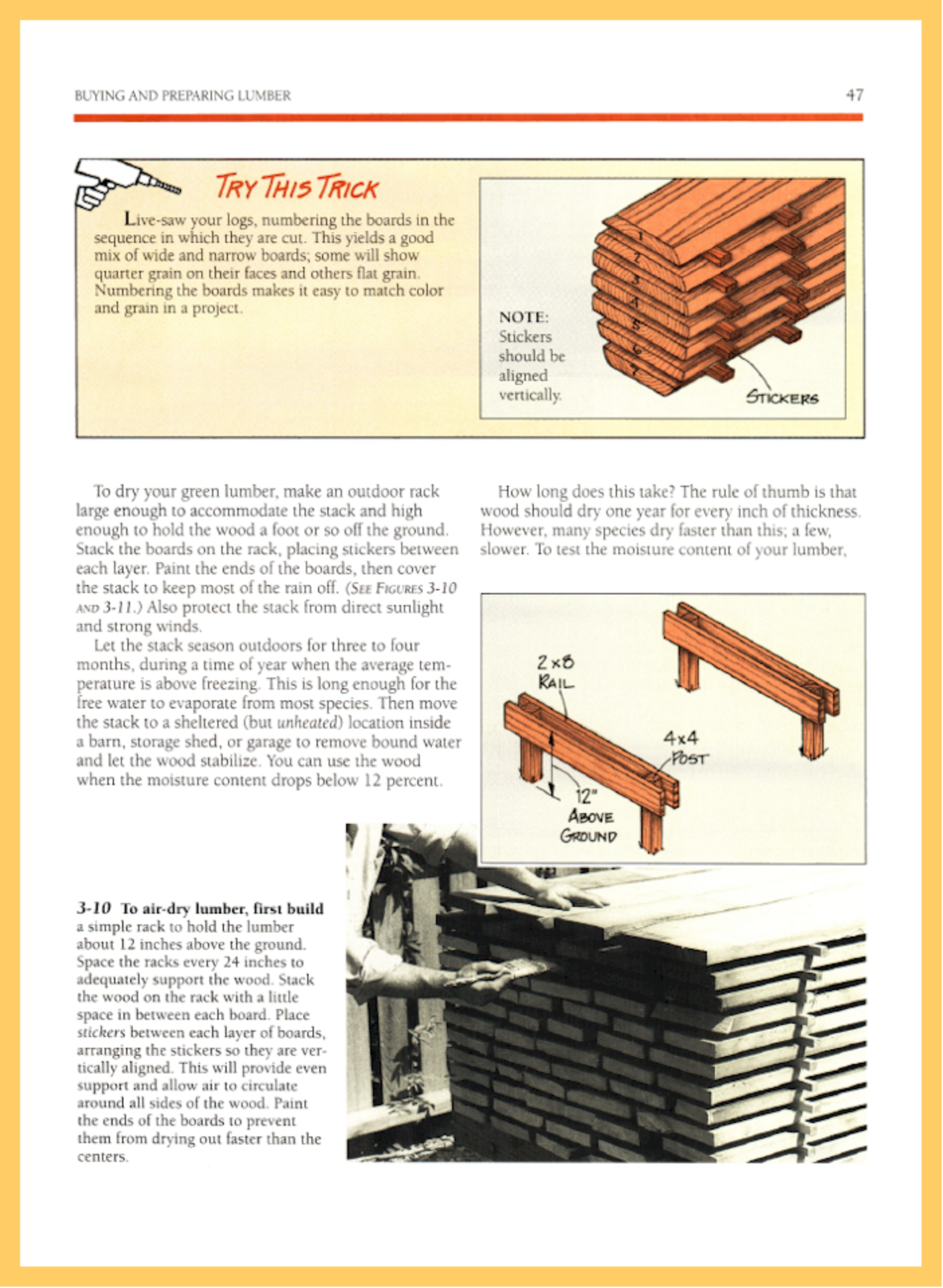 Craftsmanship is in the details, the detail most often overlooked is the nature and complexity of the wood itself. Nick reveals the secret of how wood works explaining the differences between hardwoods and softwoods, plainsawn and quartersawn, straight-grained and figured. He also covers other woodworking materials – veneers, laminates, plywood, and composite sheet materials. There are even instructions for milling and drying you own lumber. Five projects plans show how to use wood grain and figure to your best advantage: Keeping Chest, Herringbone Cutting Board, Grandmother Clock, Mission Bookcase, and a Round Tavern Table.. 128 pages, over 200 illustrations and photos in PDF format.