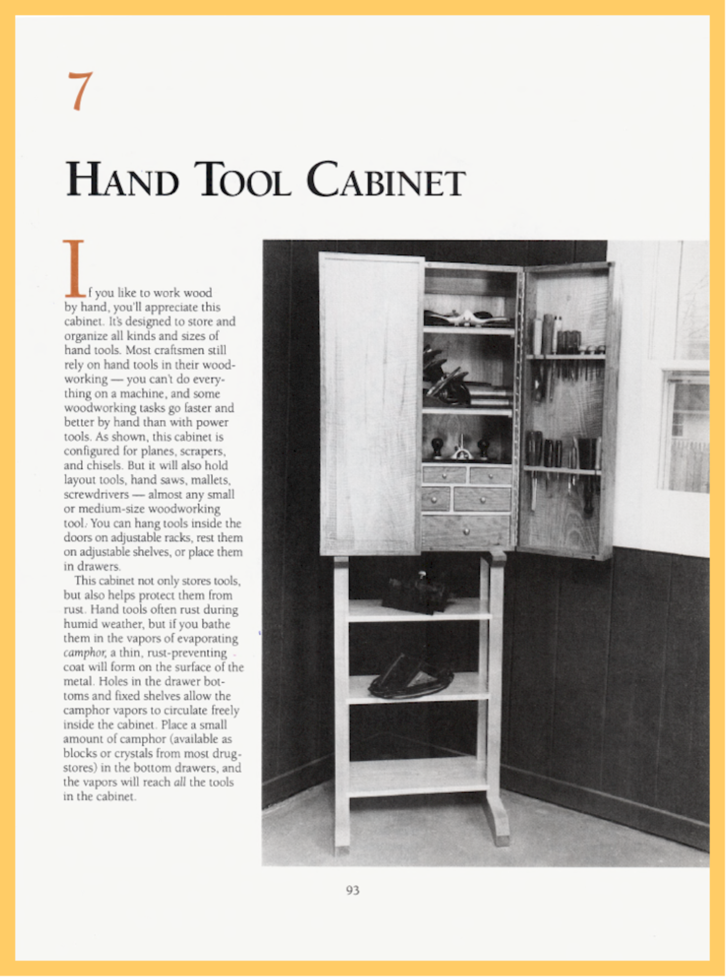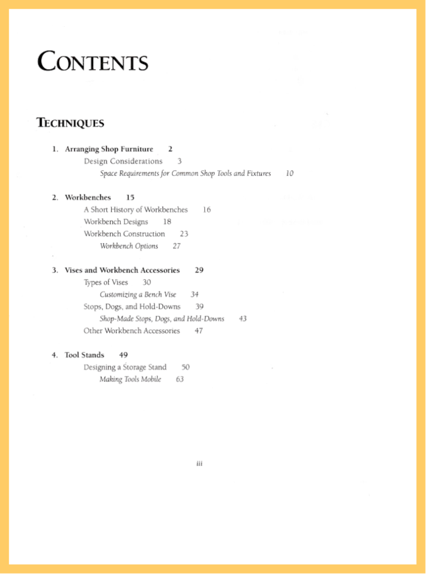 A good workshop needs to be well furnished, and this doesn’t mean just filling it with tools. Nick shows how to plan a safe, productive workshop, with work surfaces, storage units, and – most importantly – room to work. He shows alternate designs for workbenches, the heart of every workshop, then demonstrates various vises, bench dogs, hold-downs, tool stands, shop cabinets, tool racks, and wood storage. There are plenty of suggestions for workshop accessories you can make, plus complete plans for a Storage Stand that can be adapted to most power tools, a Hand Tool Cabinet, a Modular Workbench, and an Adjustable Shop Stool. 128 pages, over 300 illustrations and photos in PDF format.